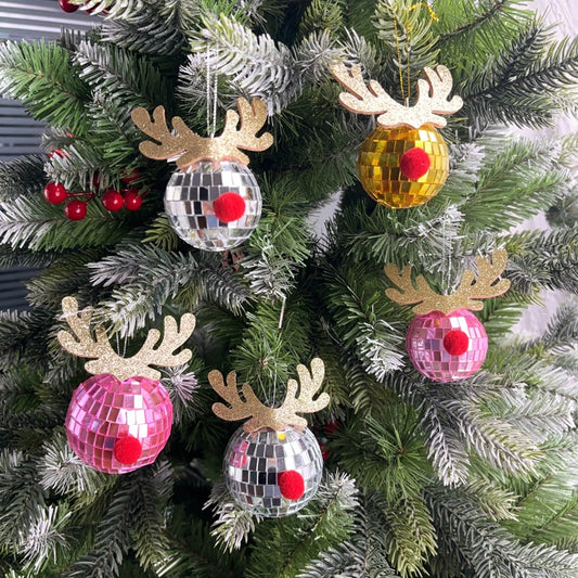 Mirror Elk Horn Christmas Ball Tree Decoration Pendant