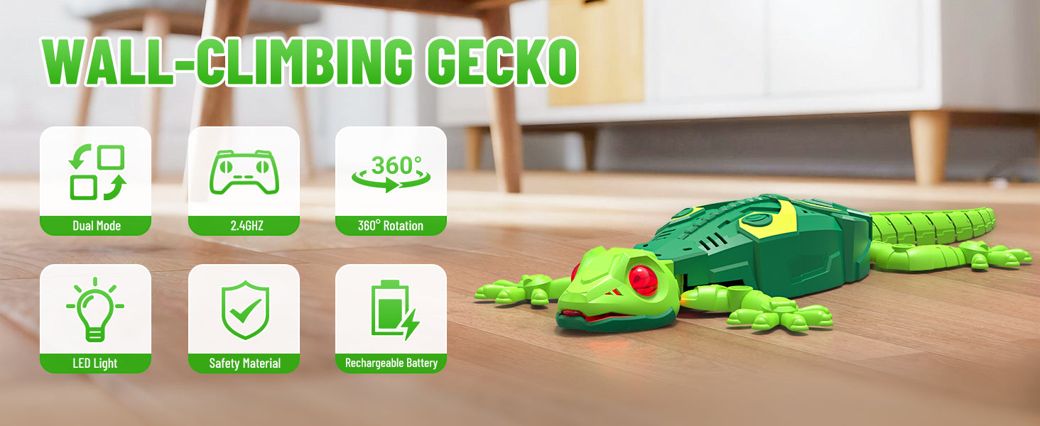 Vibe Toys Wall Climbing RC Gecko with LED Eyes | Defy Gravity with 360° Spins, The Ultimate Indoor Adventure Toy for Kids & Adults