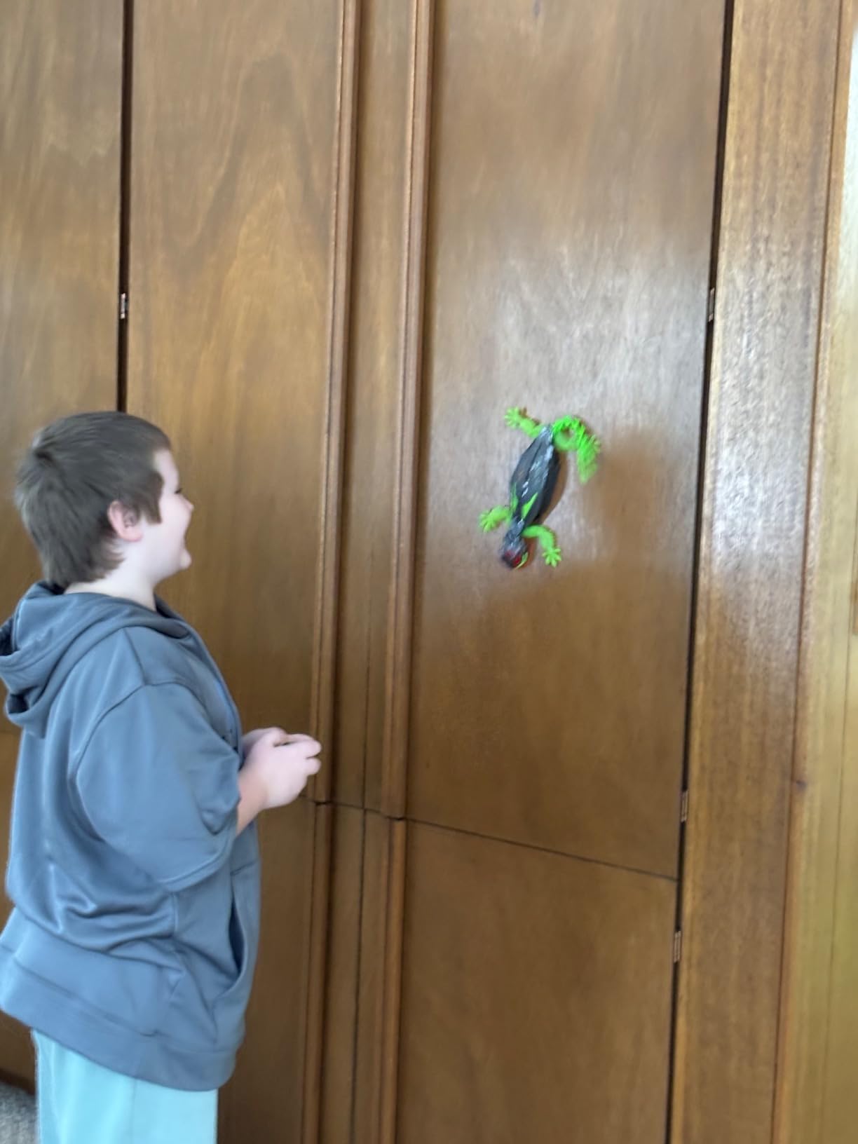 Our kids were absolutely blown away when this geeco started climbing on the walls! It's definitely something your kids will spend a while playing with! It's a very light toy and it's very flexible
